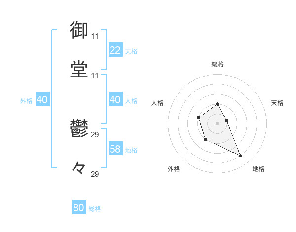 御堂 鬱々さんの総格は80画の2点!