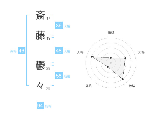 斎藤 鬱々さんを姓名の画数から五運を鑑定