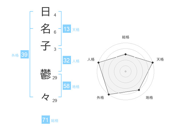 日名子 鬱々さんを姓名の画数から五運を鑑定