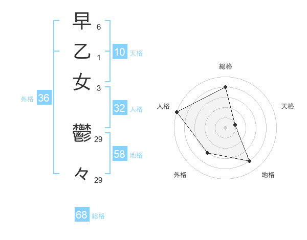 早乙女 鬱々さんを姓名の画数から五運を鑑定