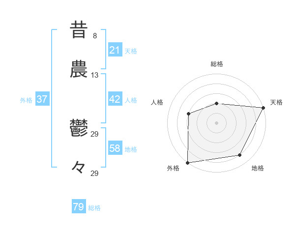 昔農 鬱々さんの総格は79画の2点!