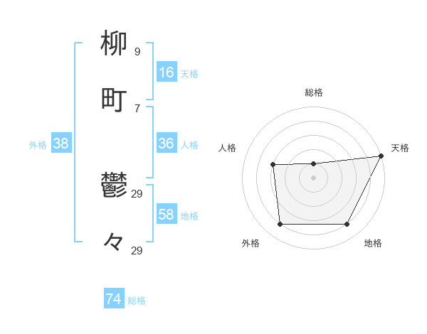 柳町 鬱々さんを姓名の画数から五運を鑑定