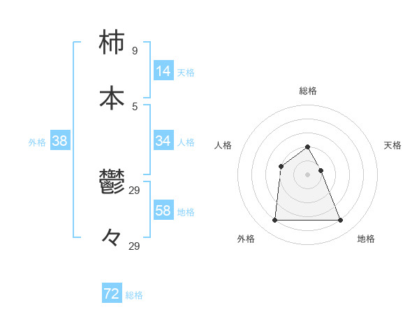 柿本 鬱々さんの外格は38画の4点!