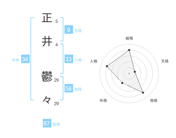 正井 鬱々さんを姓名の画数から五運を鑑定