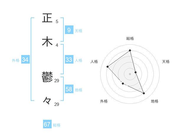 正木 鬱々さんを姓名の画数から五運を鑑定