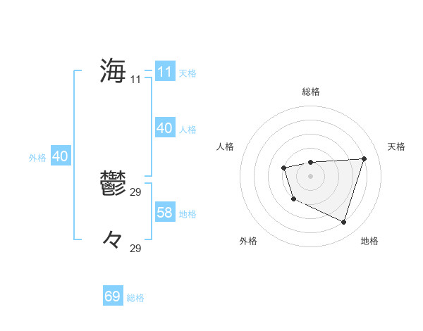 海 鬱々さんの総格は69画の1点!