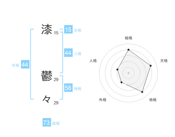 漆 鬱々さんを姓名の画数から五運を鑑定
