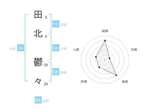 田北 鬱々さんを姓名の画数から五運を鑑定