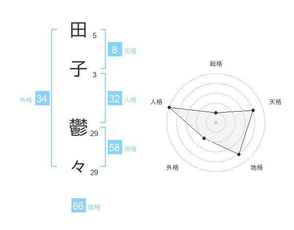 田子 鬱々さんの天格は8画の4点!
