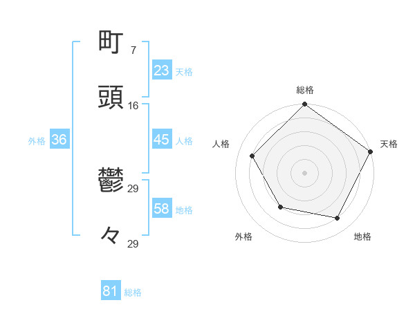 町頭 鬱々さんの総格は81画の5点!