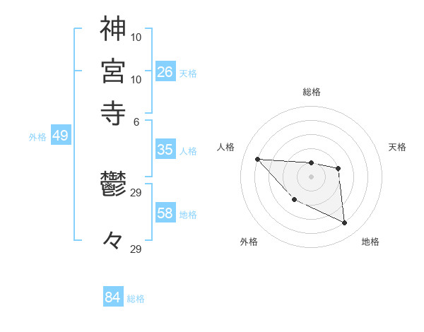 神宮寺 鬱々さんの総格は84画の1点!