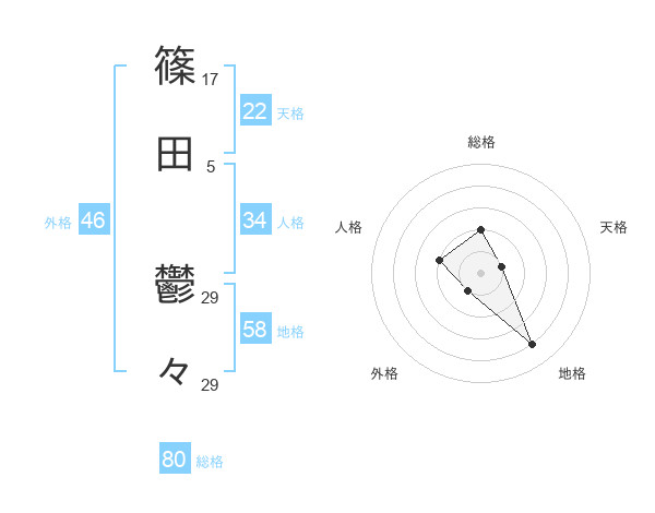 篠田 鬱々さんを姓名の画数から五運を鑑定