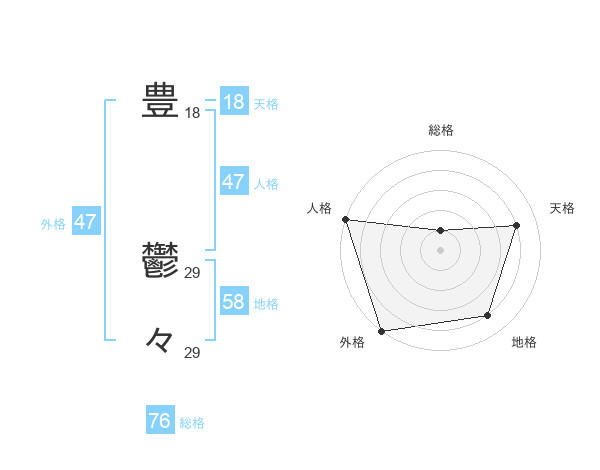 豊 鬱々さんの総格は76画の1点!