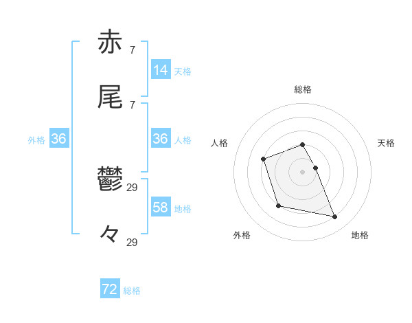 赤尾 鬱々さんを姓名の画数から五運を鑑定