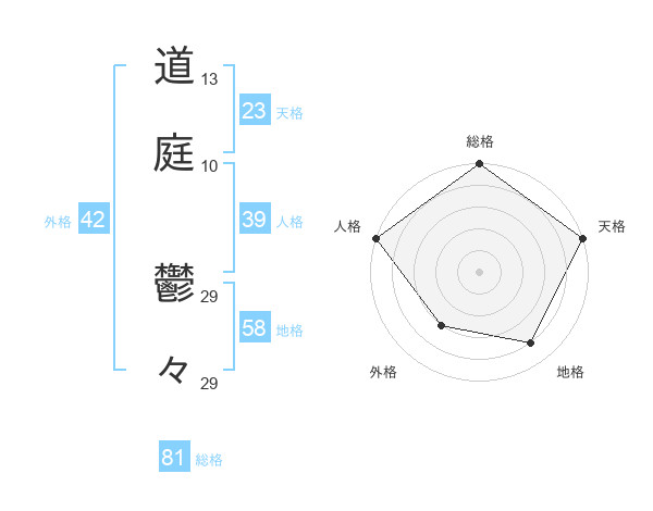 道庭 鬱々さんの総格は81画の5点!