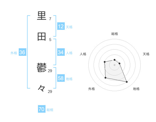 里田 鬱々さんの天格は12画の1点!