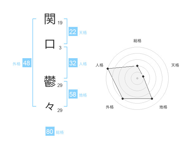 関口 鬱々さんを姓名の画数から五運を鑑定