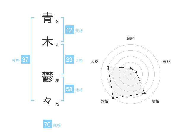 青木 鬱々さんの外格は37画の5点!