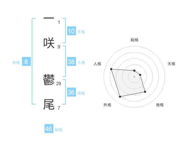 一咲 鬱尾さんの総格は46画の1点!