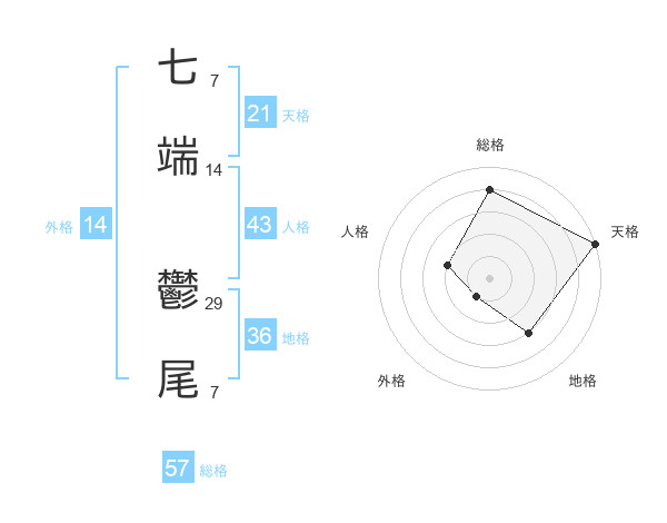 七端 鬱尾さんを姓名の画数から五運を鑑定