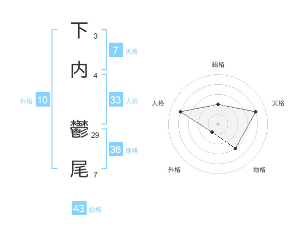 下内 鬱尾さんを姓名の画数から五運を鑑定