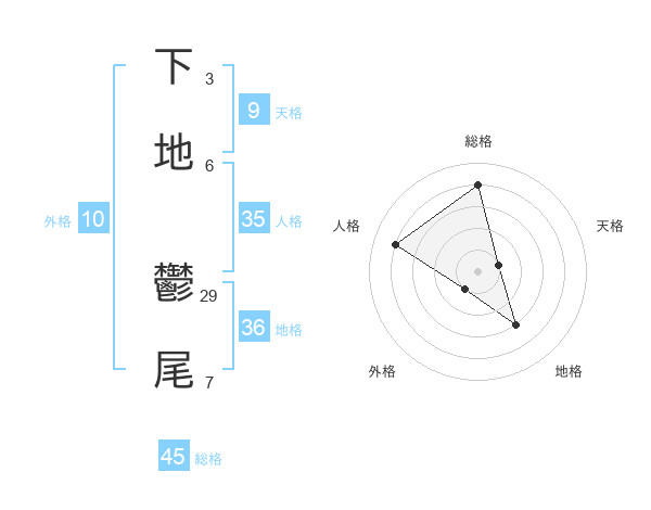下地 鬱尾さんを姓名の画数から五運を鑑定