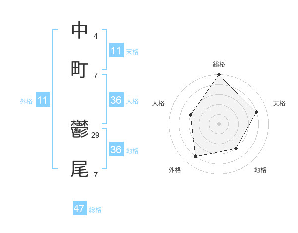 中町 鬱尾さんを姓名の画数から五運を鑑定