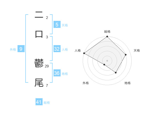 二口 鬱尾さんを姓名の画数から五運を鑑定