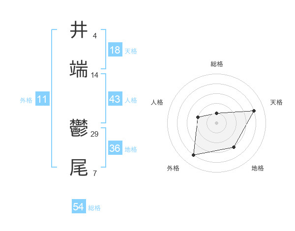 井端 鬱尾さんの総格は54画の1点!
