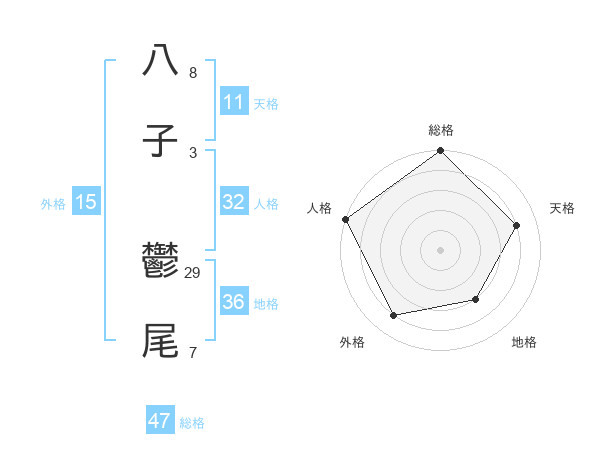 八子 鬱尾さんの総格は47画の5点!