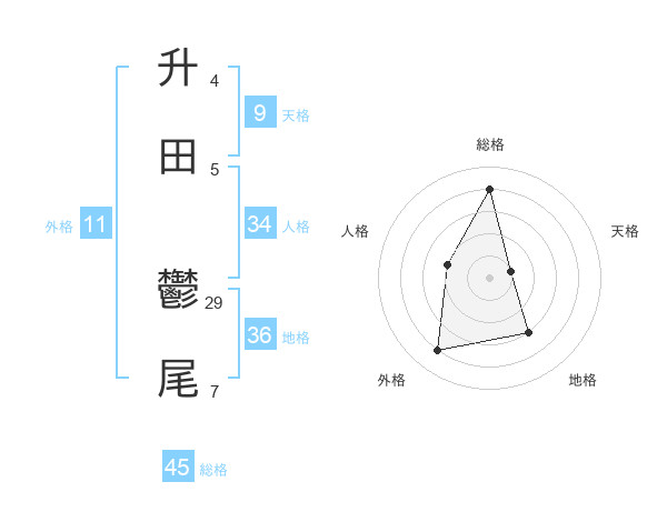 升田 鬱尾さんの総格は45画の4点!