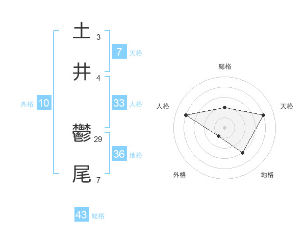 土井 鬱尾さんの総格は43画の2点!