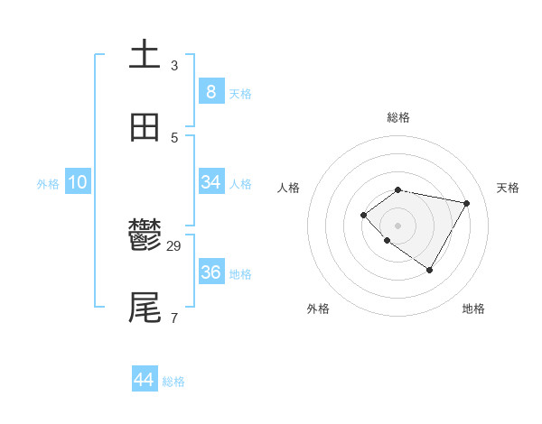 土田 鬱尾さんを姓名の画数から五運を鑑定
