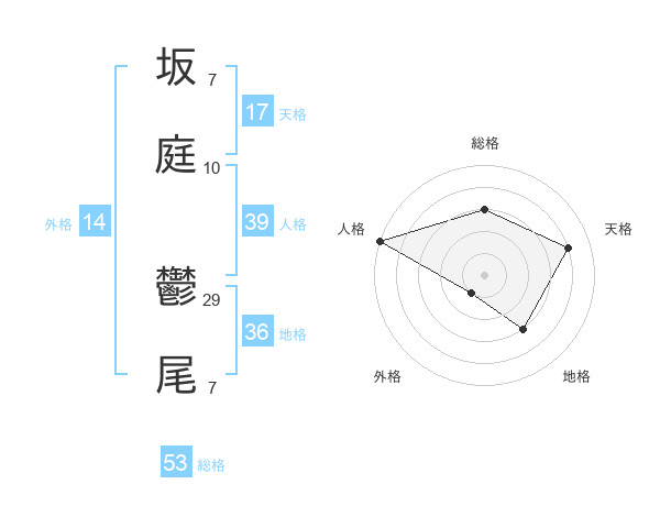 坂庭 鬱尾さんの総格は53画の3点!