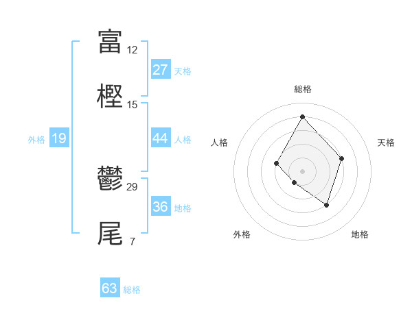 富樫 鬱尾さんの総格は63画の4点!