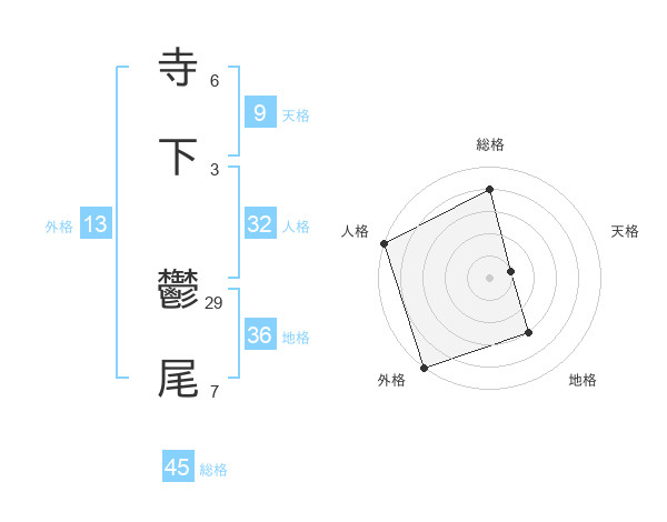 寺下 鬱尾さんの総格は45画の4点!