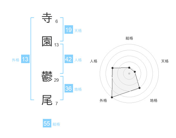 寺園 鬱尾さんの外格は13画の5点!