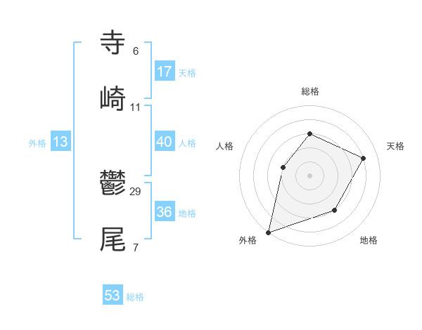 寺崎 鬱尾さんの総格は53画の3点!