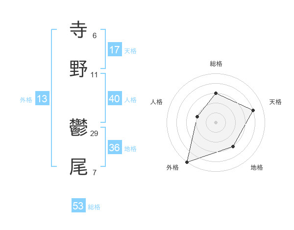 寺野 鬱尾さんの総格は53画の3点!