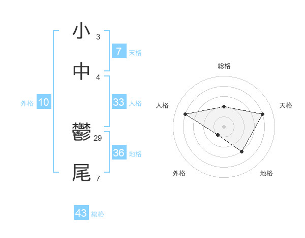 小中 鬱尾さんの天格は7画の4点!