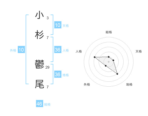 小杉 鬱尾さんの総格は46画の1点!