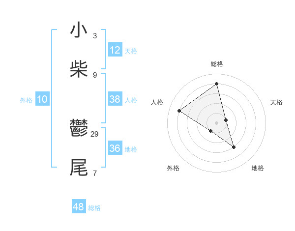 小柴 鬱尾さんの総格は48画の4点!
