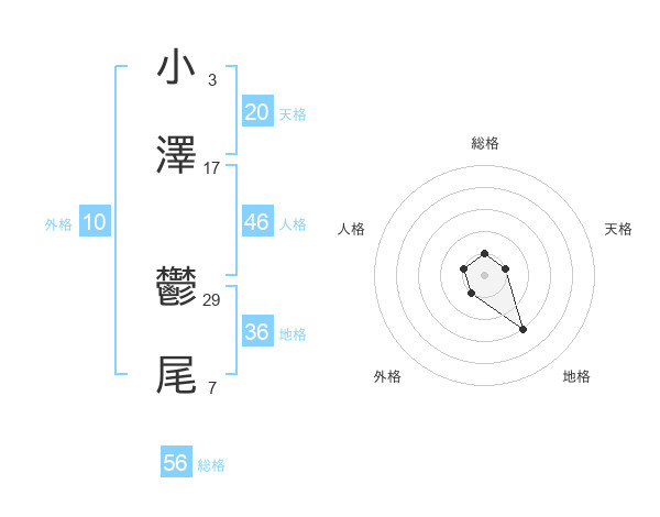 小澤 鬱尾さんの総格は56画の1点!