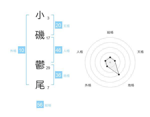 小磯 鬱尾さんの総格は56画の1点!