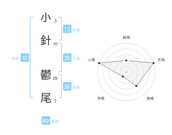 小針 鬱尾さんの総格は49画の2点!