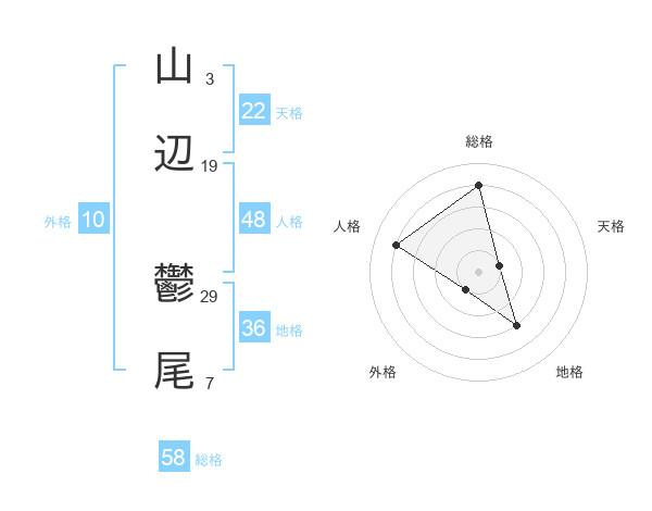 山辺 鬱尾さんの総格は58画の4点!