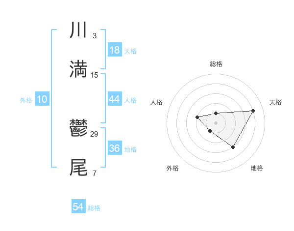 川満 鬱尾さんの総格は54画の1点!
