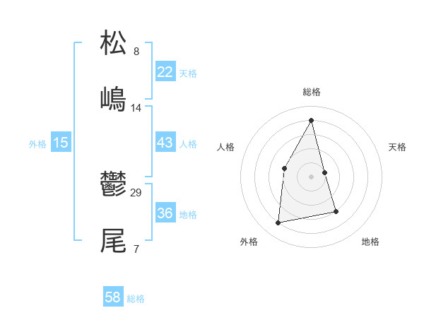 松嶋 鬱尾さんを姓名の画数から五運を鑑定