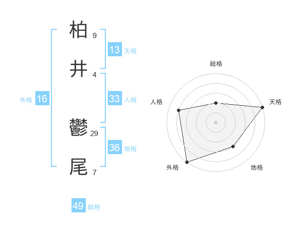 柏井 鬱尾さんの天格は13画の5点!