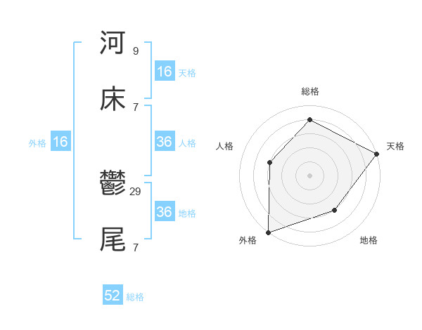河床 鬱尾さんを姓名の画数から五運を鑑定